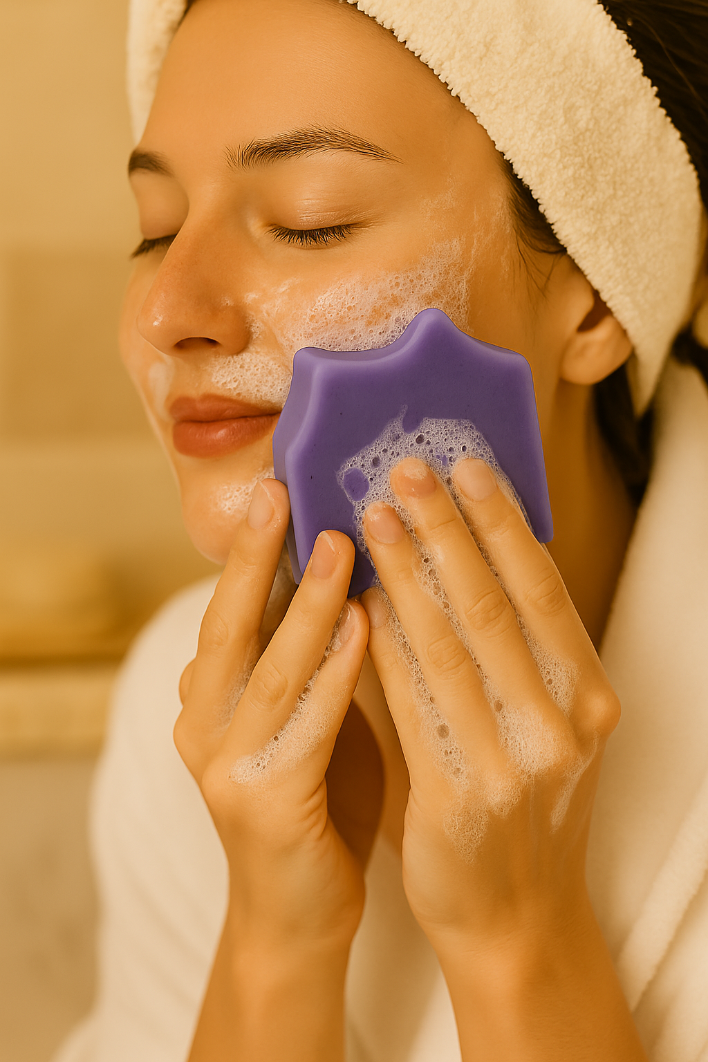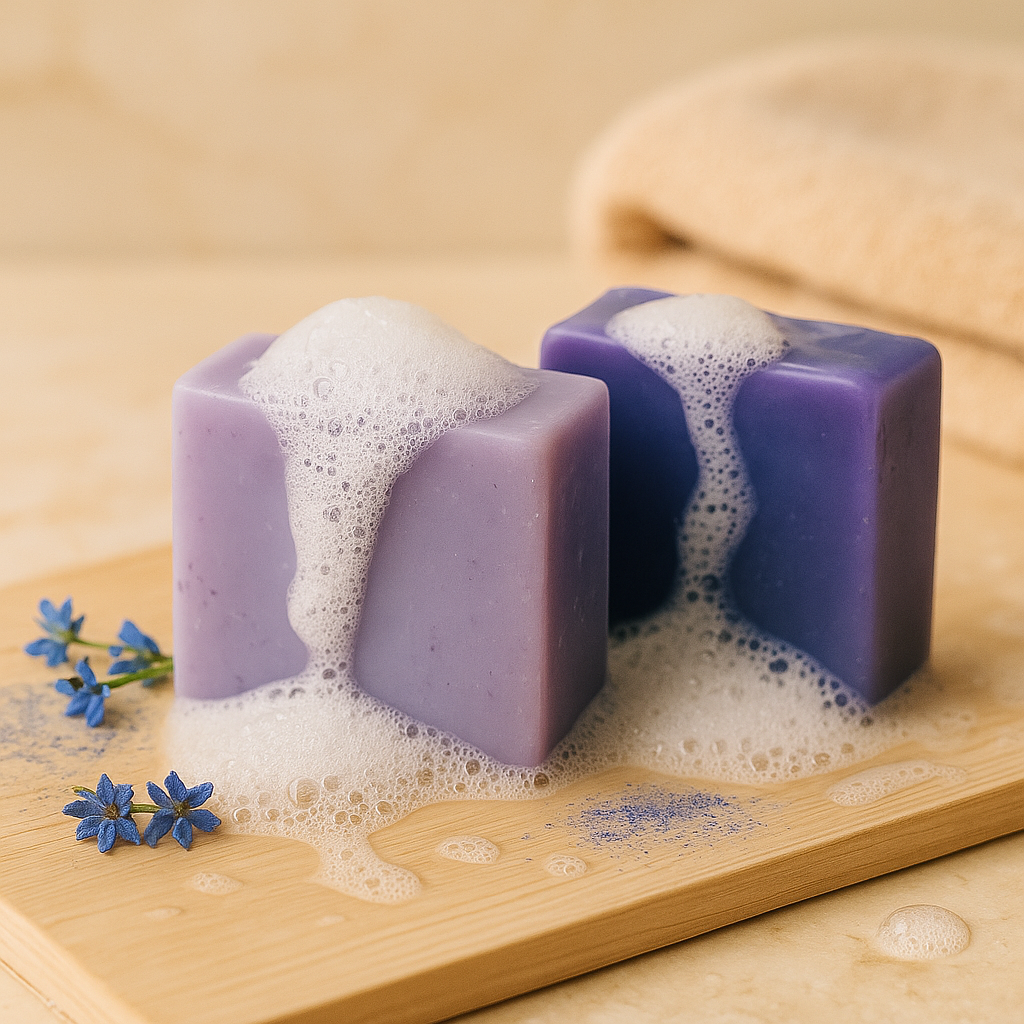 Un jabón en tonos violetas obtenidos de la flor de orquídea que ofrece limpieza suave y buena tolerancia en pieles sensibles o secas.